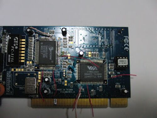 ということで、41番ピンと基板の間をカット→1番ピンはピン側をカットして基板上に少し残し。 基板上に残した元1番のパターンに41番ピンからの電源を4.7k抵抗経由で接続することに。 作業開始してすぐに1番と43番を間違えてカット(汗 あせらず急いで、カット…