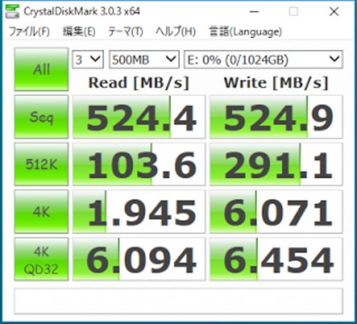 まぁ、何はなくともとりあえず、ディスクのベンチマークを見てくださいな。 ほぼSATA3の限界速度に張りついてる数値が出ているわけですが、当然ながらSSDではありません。 記憶域プールに回復性「シンプル」を、一手間かけて作ると、すんごい性能のワーク領…